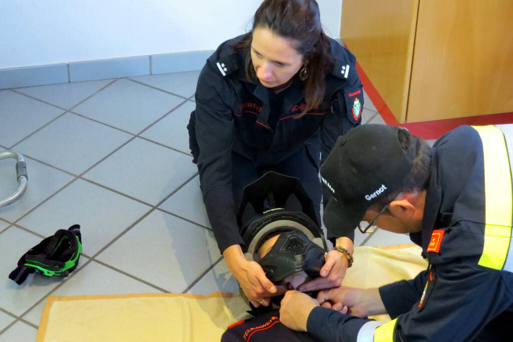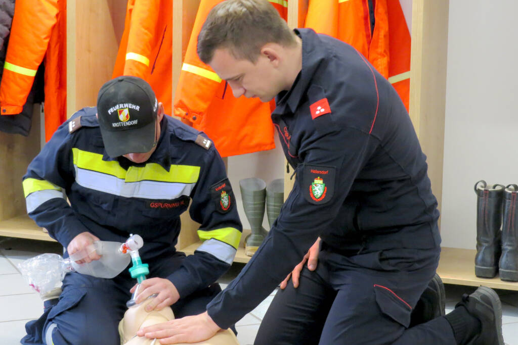 Um 08:00 Uhr wurde in Gruppen bei 4 Stationen praktische Übungen durchgeführt. So konnte die Reanimation, Handhabung mit dem Defibrillator, Beatmung von Babys und Kleinkindern, bewusstlose Personen aus Gefahrenbereichen retten und lagern, den richtigen Transport mit der Schaufeltrage und der Schleifkorbtrage von jedem Einzelnen beübt werden.