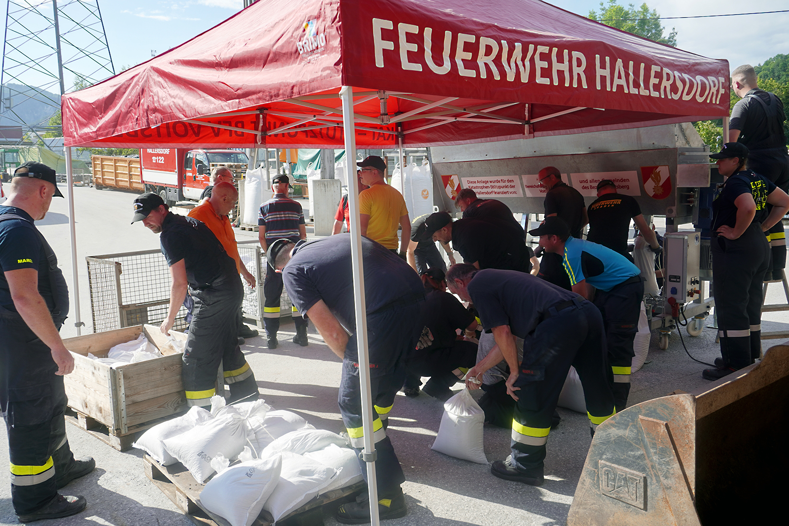 Treffpunkt war um 17:00 Uhr beim Wirtschaftshof in Köflach, wo sich zahlreiche Feuerwehrleute von der FF Köflach, FF Graden, FF Piber, die FF Hallersdorf mit der Sandsackfüllanlage und das Personal vom Wirtschaftshof Köflach einfanden.