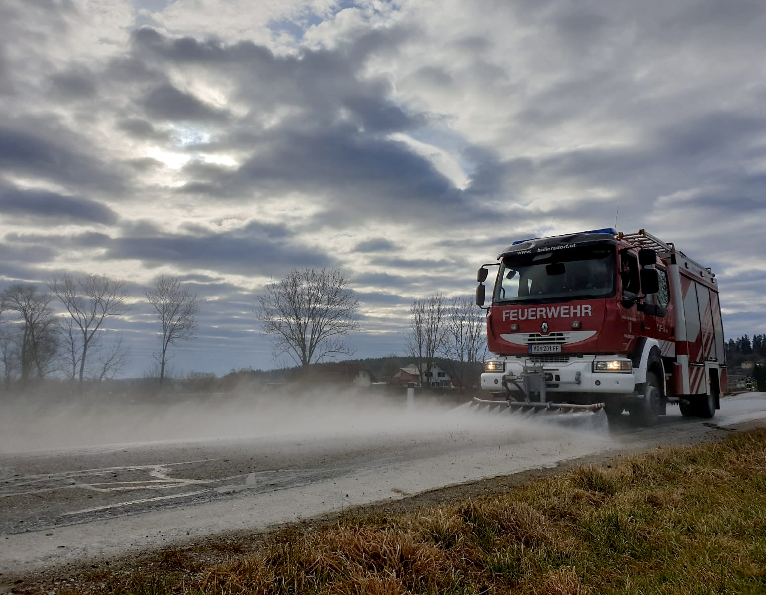 Auf Grund der momentanen Erntezeit und den feuchten Böden, wurde die FF Hallersdorf mit zwei Kameraden eingesetzt, um eine Straße vom Lehm zu befreien.