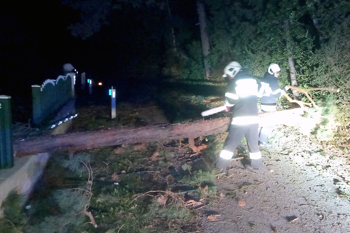 Während des Abarbeitens mussten zusätzlich weitere umgestürzte Bäume Richtung Grabenwarth und Rollau von der Straße weggeräumt werden.