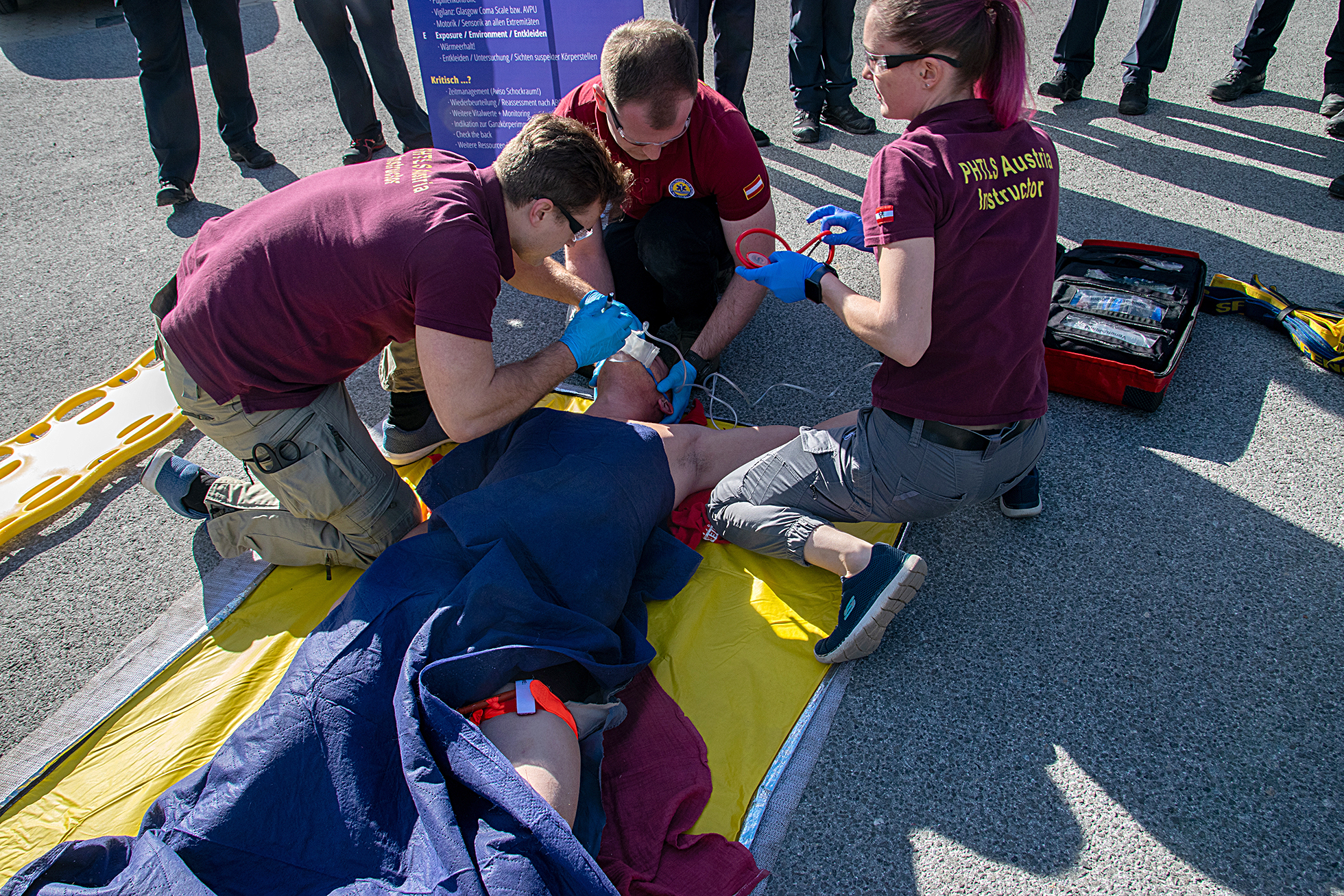 Nach einer Selbstlernphase als Vorbereitung auf den Kurstag wurden bei den Praxisstationen die strukturierte Einschätzung und Untersuchung von Patienten nach dem XABCDE Schema, die Atemwegssicherung und Kontrolle von starken Blutungen sowie Immobilisation und der richtige Umgang mit den Spineboard geübt. Zusätzlich wurde auch der Umgang mit anderen Rettungsgeräten wie Rettungsboa, Beckenschlinge usw. geschult.